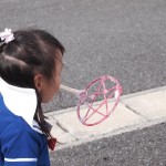 シャボン玉遊びではハンガーを変形させて大きなシャボン玉をたくさん飛ばしました。